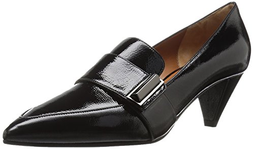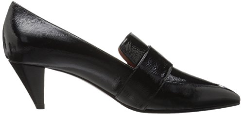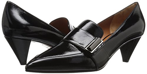 Product DescriptionSoft patent leather pump with loafer details on a kitten heel0