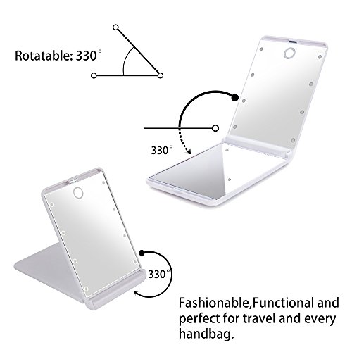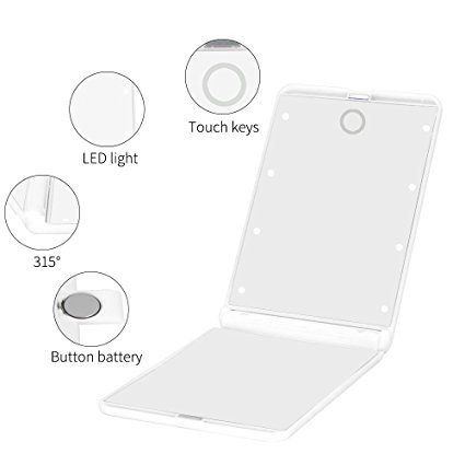 LED Makeup Mirror : 8pcs Leds providing a clean and bright reflection, let you see the detail of your face clear and allow makeup in the dark or poorly lit areas.