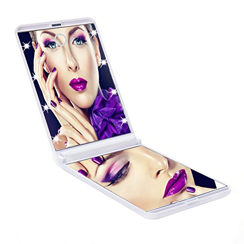 Travel Led Makeup Mirror , OEE 1X 2X Magnifying Led Mirror for Vanity Bathroom Bedroom Car , Brightness Adjustable