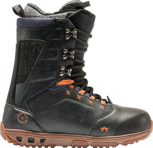 Studio : Rome Snowboards Publisher : Rome Snowboards Binding : Sports Product Description Beneath its classic, skate-inspired exterior, the Rome Men's Libertine Snowboard Boot packs a boatload of tech for comfort, response, and support anywhere on the mountain. A true medium-flex boot, the Libertine slays everything from the pipe to the backcountry with reckless abandon. Leverage lacing offers the reliability and convenience of traditional lacing and adds webbing loops at the instep to give you extra lacing power over the ankle area so your heel stays locked down. The Ultra F. I. T. liner features heat-moldable foam for a true custom fit, and HeelGrip lining helps your feet stay in place. The Pro FoamBed cushions harsh landings, and it sports an Aegis anti-odor treatment to keep foot funk at bay. An expanded elastic toe zone suits a greater variety of foot shapes than a conventional liner, while 3D Skate Cuff memory foam offers cush ankle comfort. The 3D-molded shell tongue and TPU backstay enhance energy return for better response and more power in turns. The three-part TrackedOut sole incorporates loads of EVA foam that not only absorbs shock but keeps the boot's weight down. Anti-shock gel pads under the heels bear the brunt of flat landings so your feet don't have to, and rubber in high-wear areas ensures durability and traction. 0