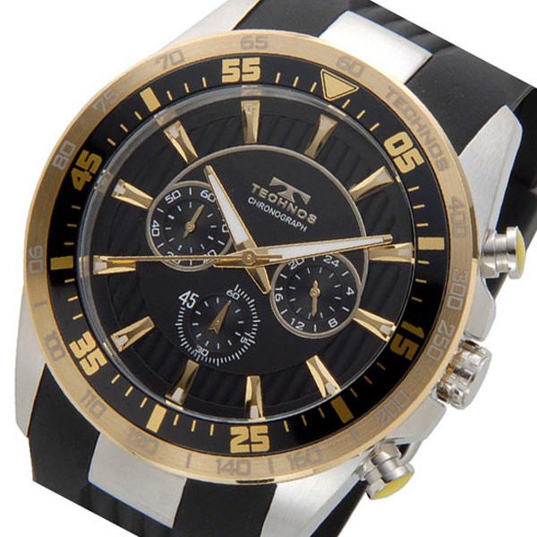 テクノス TECHNOS ダイバー クオーツ メンズ クロノ 腕時計 T6398SC ブラック