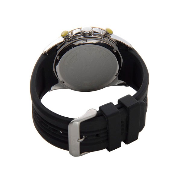 クオーツ、クロノグラフ、10気圧防水、ミネラルクリスタルガラス 、日付表示、カラー:ゴールド/ブラック(文字盤)、ブラック(ベルト)