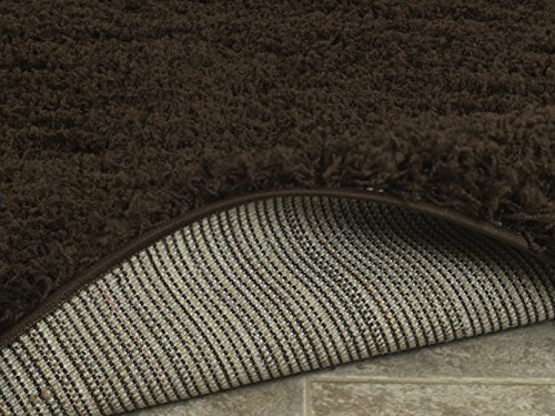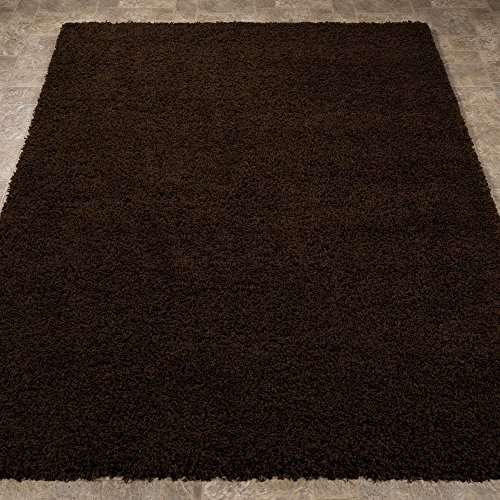 Cozy shag collection brown solid shag rug (5'0" x 7'0") contemporary living and bedroom soft shaggy area rug.
