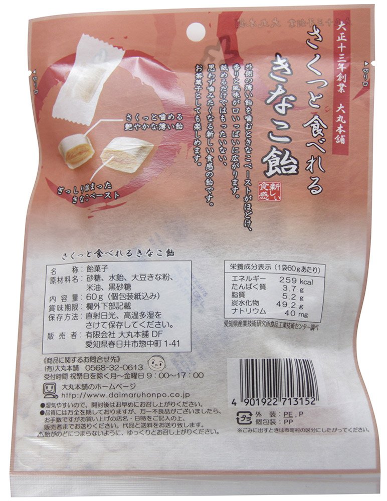 When you chew the outer thin candy, the kinako paste unravels, the fragrance and flavor spread throughout your mouth.