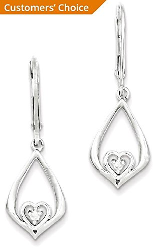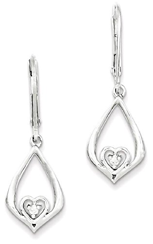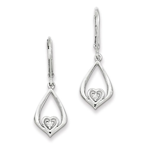 ICECARATS DESIGNER JEWELRY 925 STERLING SILVER DIAMOND HEART IN TEARDROP POST STUD EARRINGS