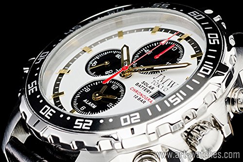 【JMW TOKYO】화이트&블랙 상급 솔라 크로노그래프 회전 베젤 손목시계【세계 한정300개】