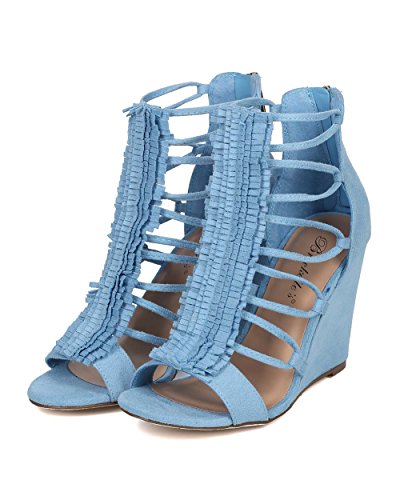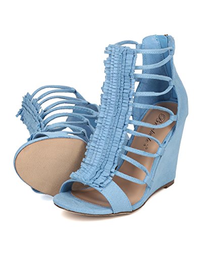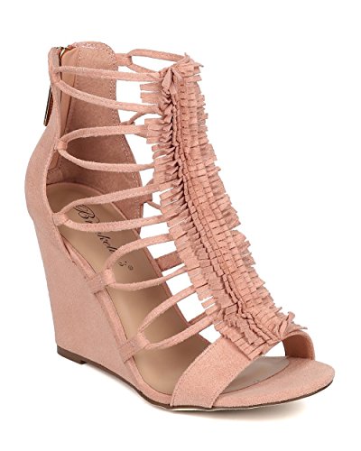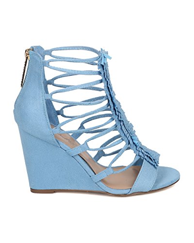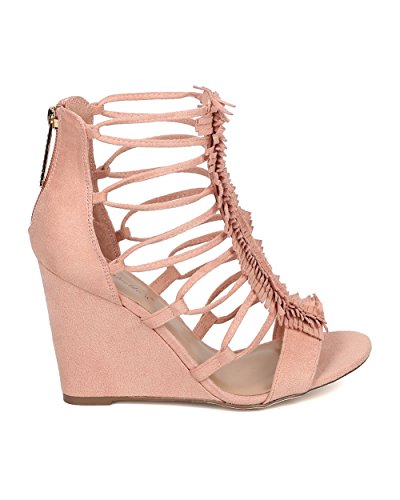 Women Open Toe Fringe Sandal - Layered Fringe Wedge - Caged Heel - GH98 By Breckelles
