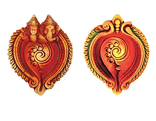 Ramya's Handpainted Earthen Terracotta LARGE Decorative Diwali Diyas - Set of 2 (7111)