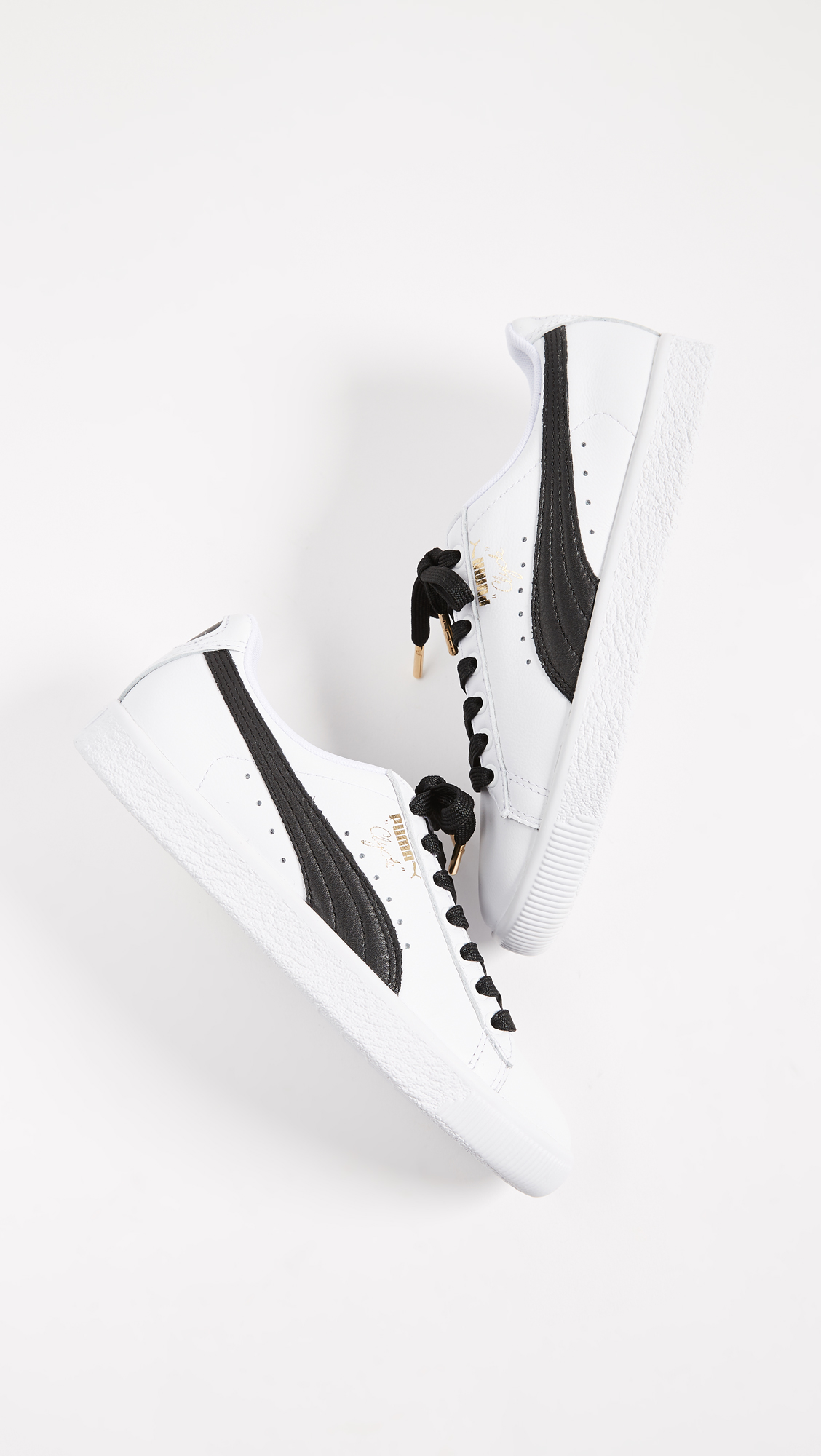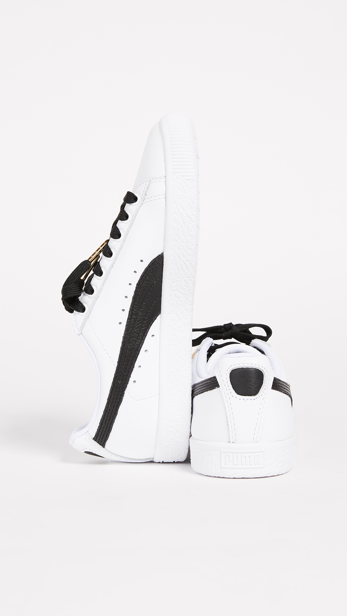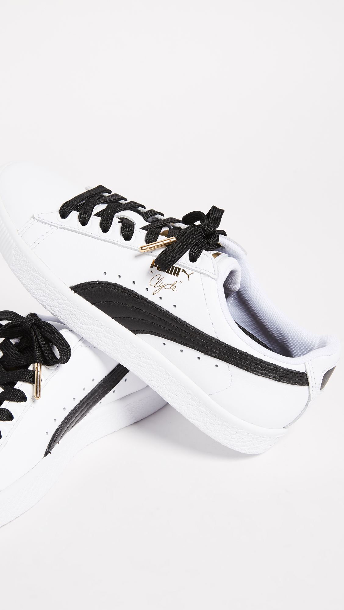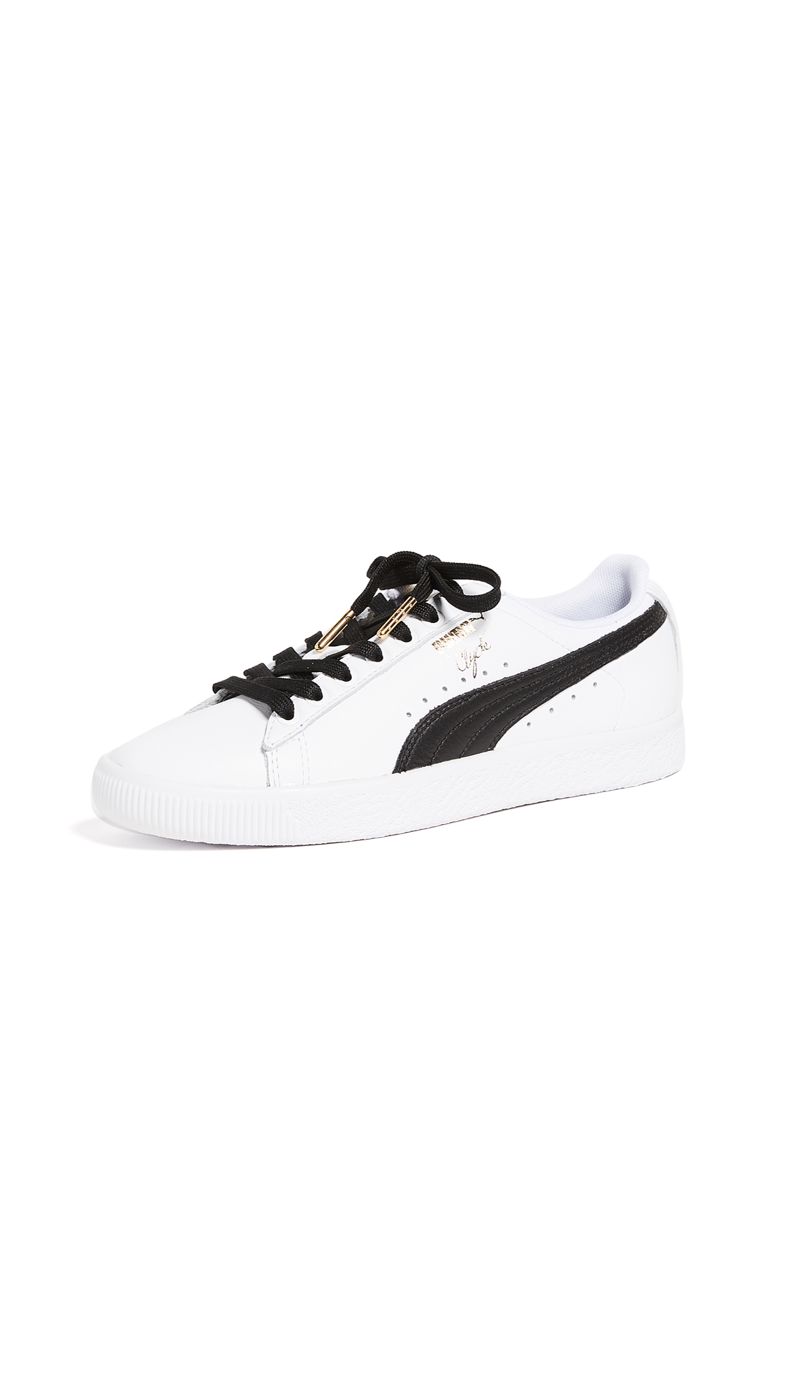 Lighter and wider than the original PUMA, these PUMA Clyde sneakers are stamped with basketball legend Walt 'Clyde' Frazier's name on the side. Contrast logo accent at the side. Lace-up closure. Rubber sole.