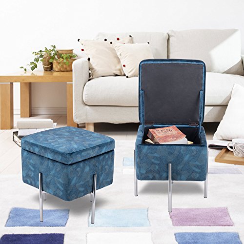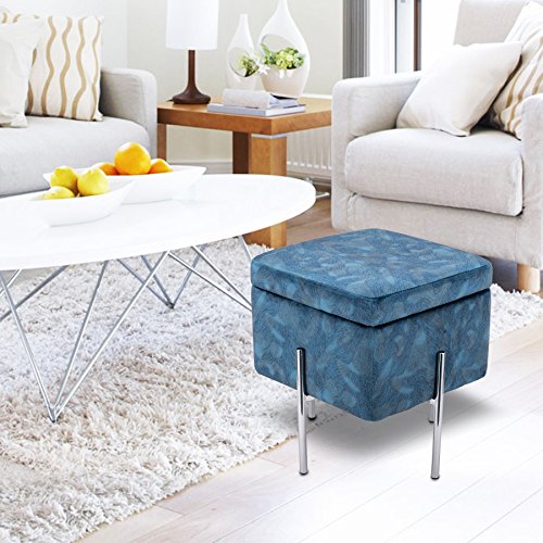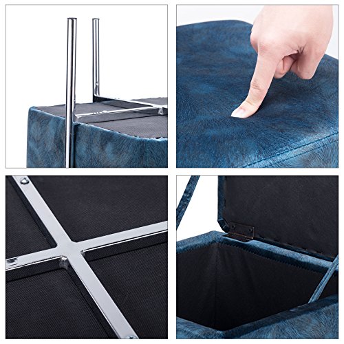 (CO-Z)/Pet Supplies/Feeding Watering Supplies/DIRECT FROM USA/CO-Z Blue Cube Storage Ottoman Bench with Lid Secret Storage Space for Living Rooms, Family Roo...