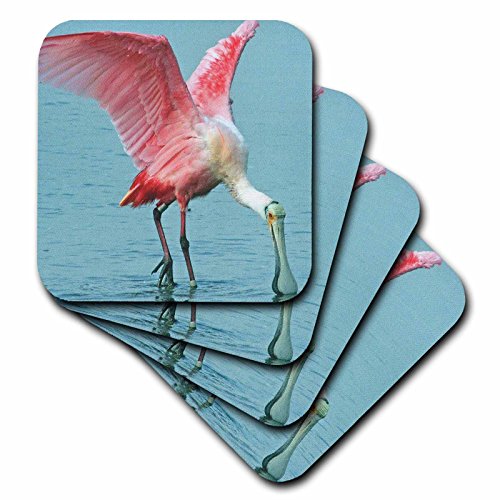 3dRose cst_35348_1 Upclose Roseate Spoonbill Pink Tropic Bird-Soft Coasters, Set of 4