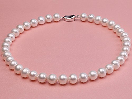 The classic necklace is made of natural freshwater pearls, with the length of 18 inches,and closed by a gilded clasp