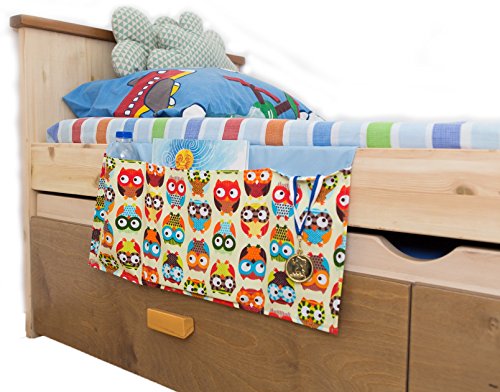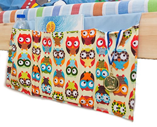 Tulli's Toys Bed Pocket Bedside Children's Caddy Storage Organizer Blue with Yellow Owl Pattern