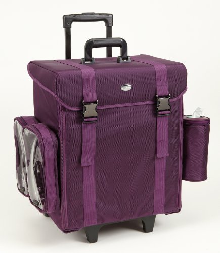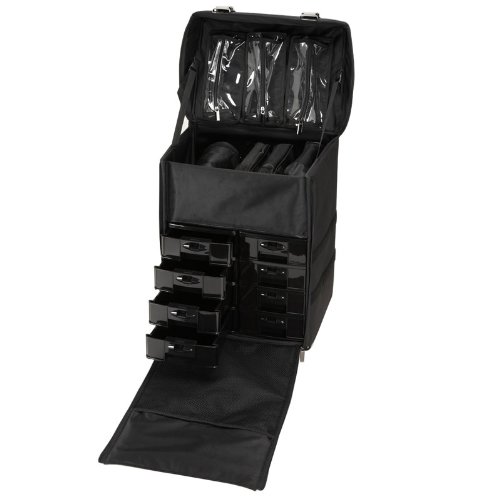 -. Binding : Misc. -. Brand : Seya Beauty -. Feature : Constructed of a high end nylon material. Easy to clean and lightweight. / Includes a detachable 13 pc brush set roll (BRUSHES NOT INCLUDED), 2 clear makeup bags, 3 clear triangular pencil/brush bags, 1 Kleenex holder, and 1 Wet Ones cylinder holder. / Durable wheel system with retractable trolley handle - extends to 39"H / 8 removable black plastic storage trays in bottom section. Sturdy metal snaps for added durability. / Overall case measures: 16.5" L x 12.5" W x 22" H -. IsAdultProduct : 0 -. Label : Seya Beauty -. Manufacturer : Seya Beauty -. ProductGroup : Beauty -. ProductTypeName : BEAUTY -. Publisher : Seya Beauty -. Studio : Seya Beauty -. Title : Seya Soft-sided Nylon Modular Professional Rolling Makeup Case w/ Removable Makeup Bags