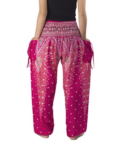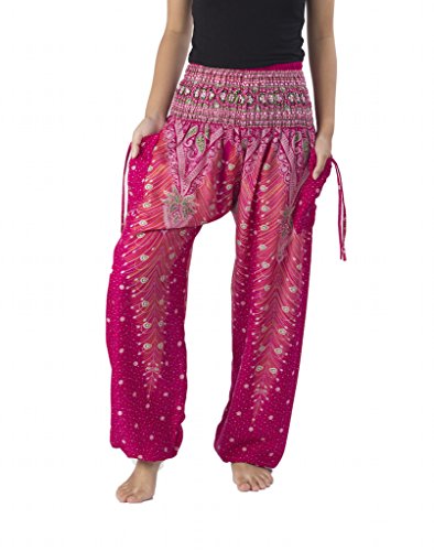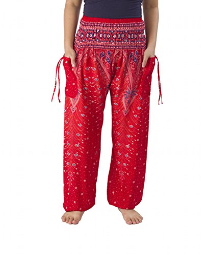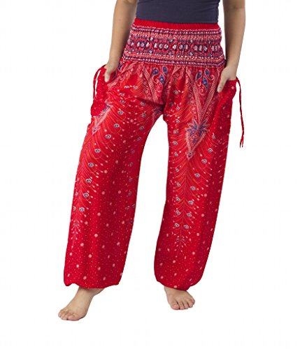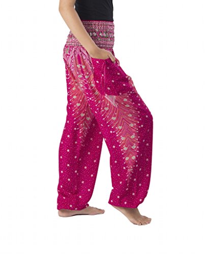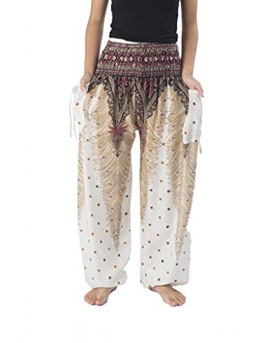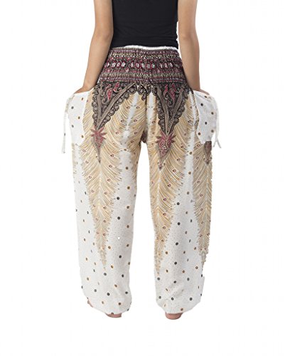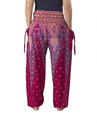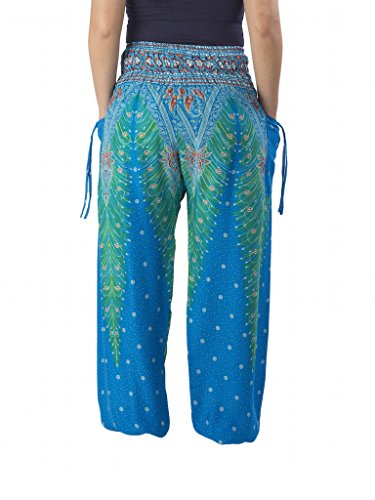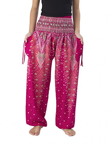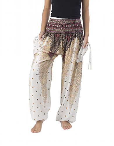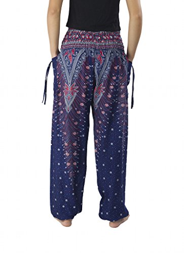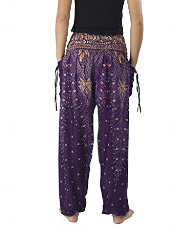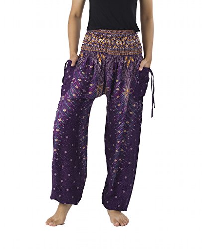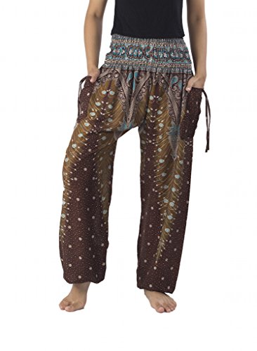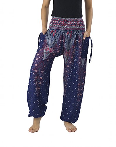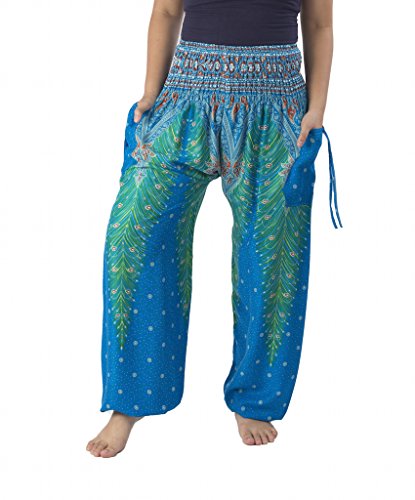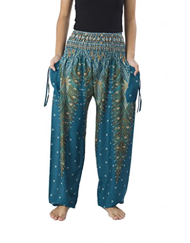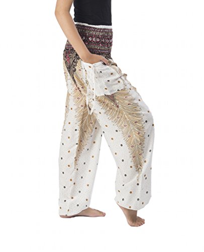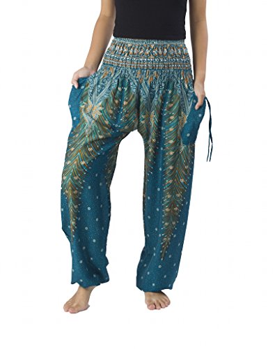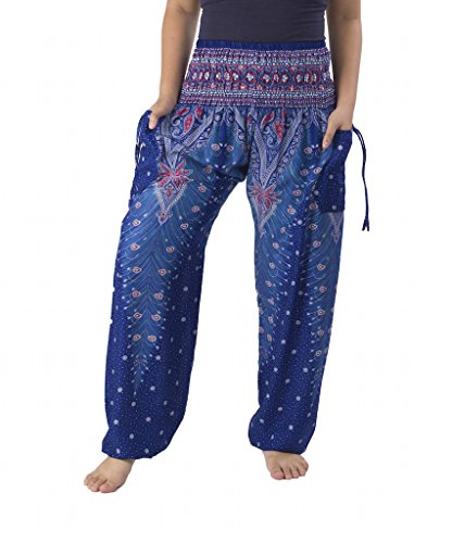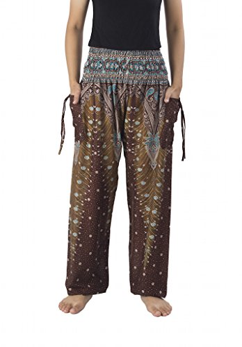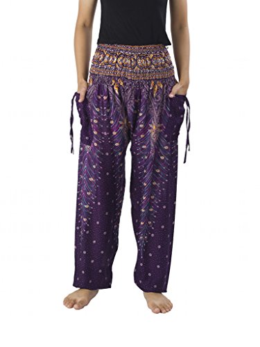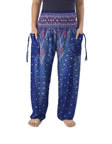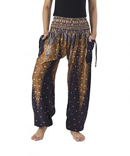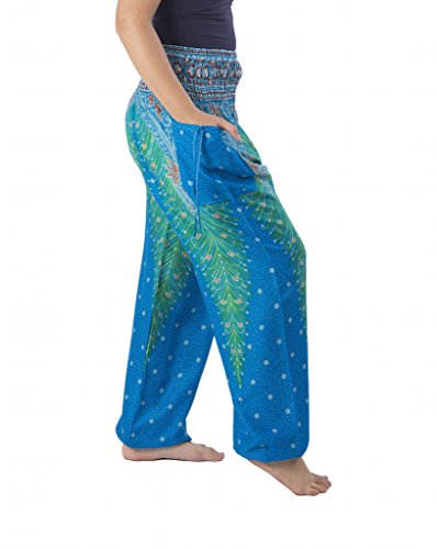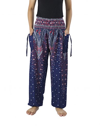 Binding : Apparel Product Description Lannaclothesdesign women's smocked peacock printed design, Yoga pants, Light weight and comfy wear, Good for relex at home, Recommended for massage wear, dance and festival. Size measurement, regular size : waist 25 - 38 inches or 64- 96.5 centimeter hip : adjustable until 44 inches or 112 centimeter length : 41 inches or 104 centimeter (Measured from top waist to bottom), inseam : 30 inches or 76 centimeter. Will fit US women size 2-12 plus size : waist 30 - 46 inches or 76- 117 centimeter hip : adjustable until 49.5 inches or 126 centimeter length : 41 inches or 104 centimeter (Measured from top waist to bottom), inseam : 30 inches or 76 centimeter. Will fit US women size 12-14 and US women plus size 14W-18W Lannaclothesdesign is Family Business and support Fair Trade Thai Handmade products. We are indeed a small operation of 8-10 staff that design and manufacture all the products. Also we have few sewing staff who work from home. I make these garments with members of my own family and our little shop has grown from a one machine operation into a 4 machine operation which we now have and most of that successful business. That has been a great time to bring our family get closer. 0