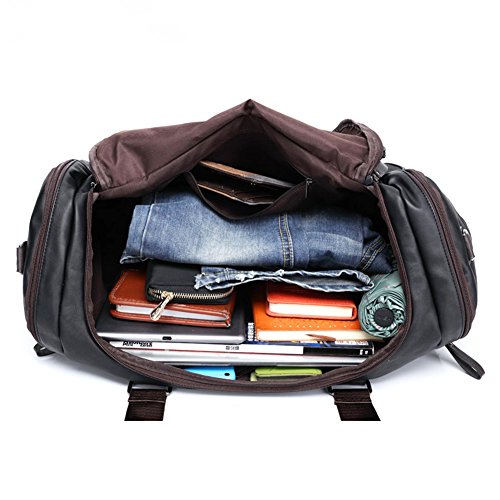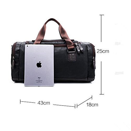 Measurements - Size: 43cm L x 25cm H x 18cm W; 16.9'L x 9.8'H x 7.1'W - Adjustable strap length: Approximately 51 inch Structure - Exterior: Two top main compartments, two side pockets - Interior: One zipped pockets, One card pocket and one phone pocket - Closure Type: Zipper - Gender: Men Women - Style: Fashion - Main Material: PU leather - Lining: Polyester Cotton Features - Perfect for everyday use, with all your daily bits. - The travel tote bag works well with a variety of different outfits and casual styles. - Durable top handle and adjustable shoulder strap. - Fashion vintage design, well sewn craftsmanship. Washing instructions: - Hand wash with cold water. - Hang to dry. - Washing separately to avoid staining. Package includes: - 1 * Bag ONLY Purchasing Notes: - The actual colour of the bag maybe different from the picture shown due to the different screen of display or reflecting light when shooting. - 1-2cm error of measuring is a reasonable range due to different measurement methods. - It's can't avoidable that you will receive the bag with some smells from original material as it's brand new. - The smell will be gone if place the bag in freely circulating air for 2-5 days. - Each bag will be check carefully before shipped, but it's still very hard to guarantee there's no extra thread. 0