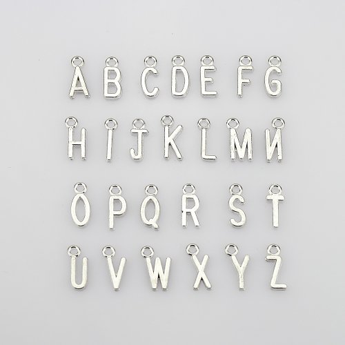 LolliBeads (TM) 2 Sets of Antiqued Silver Plated Letter Charms Alphabetic Pendant Set (52 Pcs)