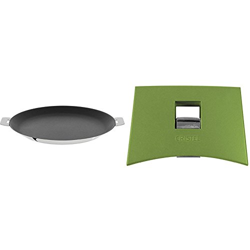 -. Title : Cristel CR30QE Non-Stick Crepe Pan, Silver, 12" with Cristel Mutine Spplmavt Set of Handles, Green