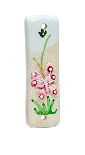 Colorful Ceramic Mezuzah - Butterfly in Pink and Green