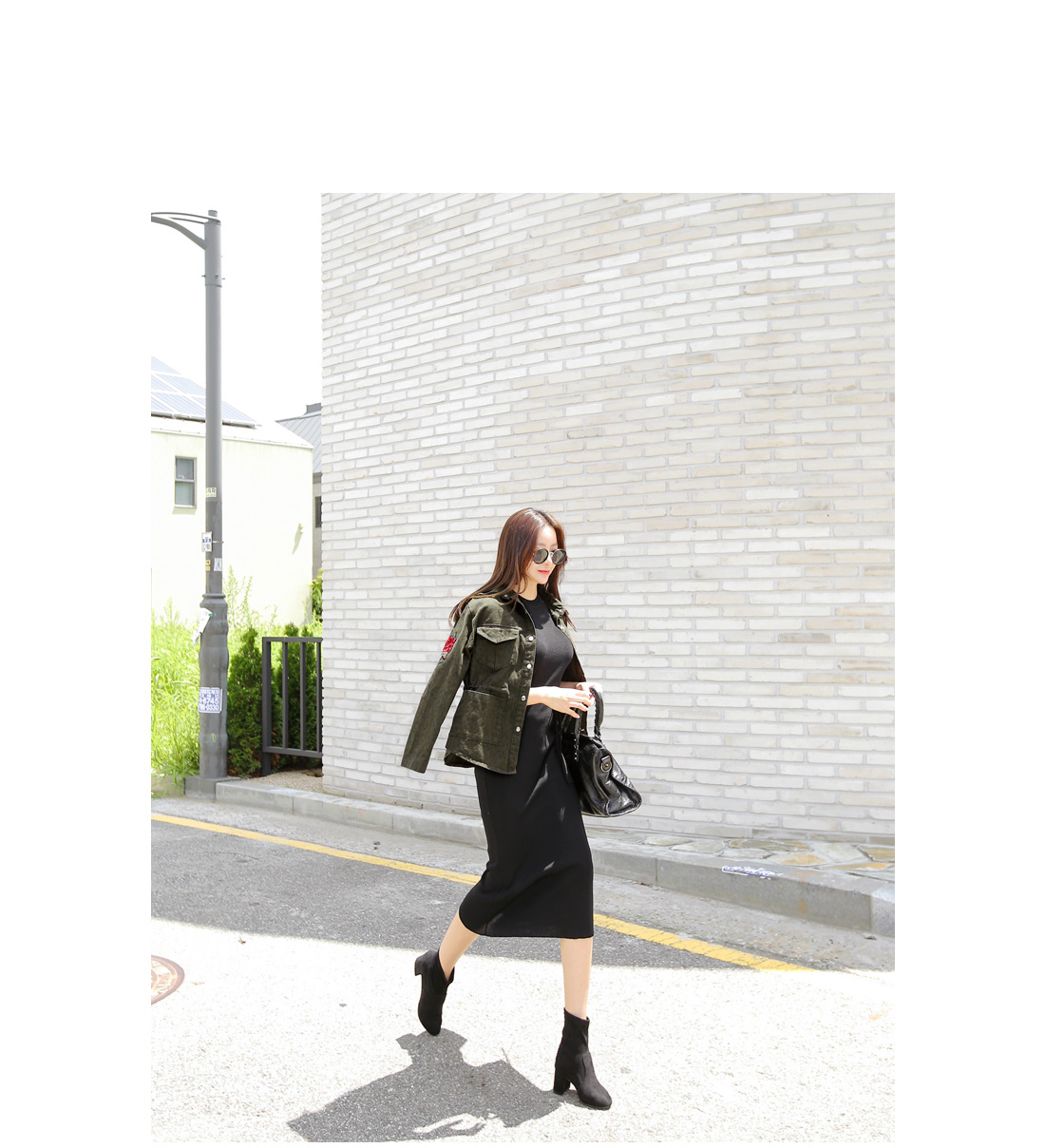 룩의 밋밋함은 덜고 스타일리쉬한 매력을 더해 주었어요.