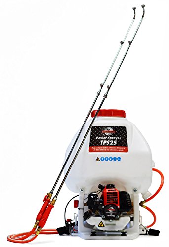 -. EAN : 0853193007185 -. Feature : Perfect for liquid pesticides treatments / Effective for pest control in orchards, vineyards, greenhouses, ranches and homes / Comfortable, adjustable backpack straps and cushion for greater operator comfort / 1.8hp / 2 Stroke Gas Engine / 6.6 gallon chemical tank for longer spraying shifts -. Label : Tomahawk Power -. Manufacturer : Tomahawk Power -. ProductGroup : Lawn & Patio -. ProductTypeName : OUTDOOR_LIVING -. Publisher : Tomahawk Power -. Studio : Tomahawk Power -. Title : 6.6 Gallon Gas Power Backpack Pesticide/Fertilizer Sprayer for Row Crop Farming -. UPC : 853193007185 -. Warranty : 1 Year