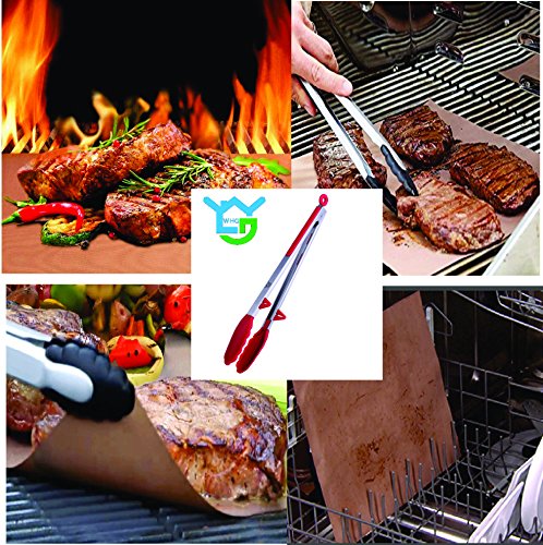 QUALITY ABOVE ALL - Our newest custom high-quality nonstick heavy duty BBQ stainless steel silicone tongs, oil brush and copper grill sheet set is designed and manufactured from selected high quality materials, made its best functional and last longer compare to others on the market! Super tough stainless steel tongs have made of corrosion resistant 304 stainless for unbeatable strength and premium construction while remaining lightweight and easy to handle