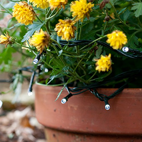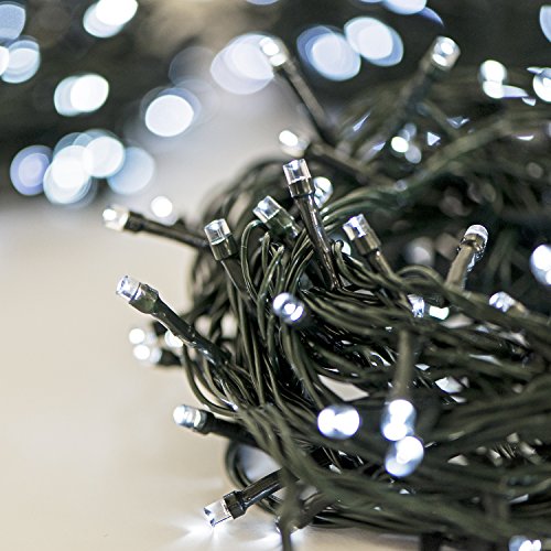 VERSATILE ✓ - 1 strand of 100 Cool White LEDs, powered by a D battery box with 8-light Modes. Water resistant and bendable this battery operated Christmas string light is the perfect addition to any indoor or outdoor space.