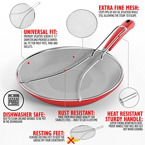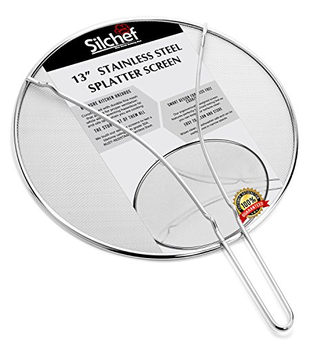 Splatter Screen - Stops 99% of Hot Oil Splatter or your - Protect Your Skin from Burns with a Silchef's Professional Grade 13" Stainless Steel Splatter Guard with a Heatproof Handle