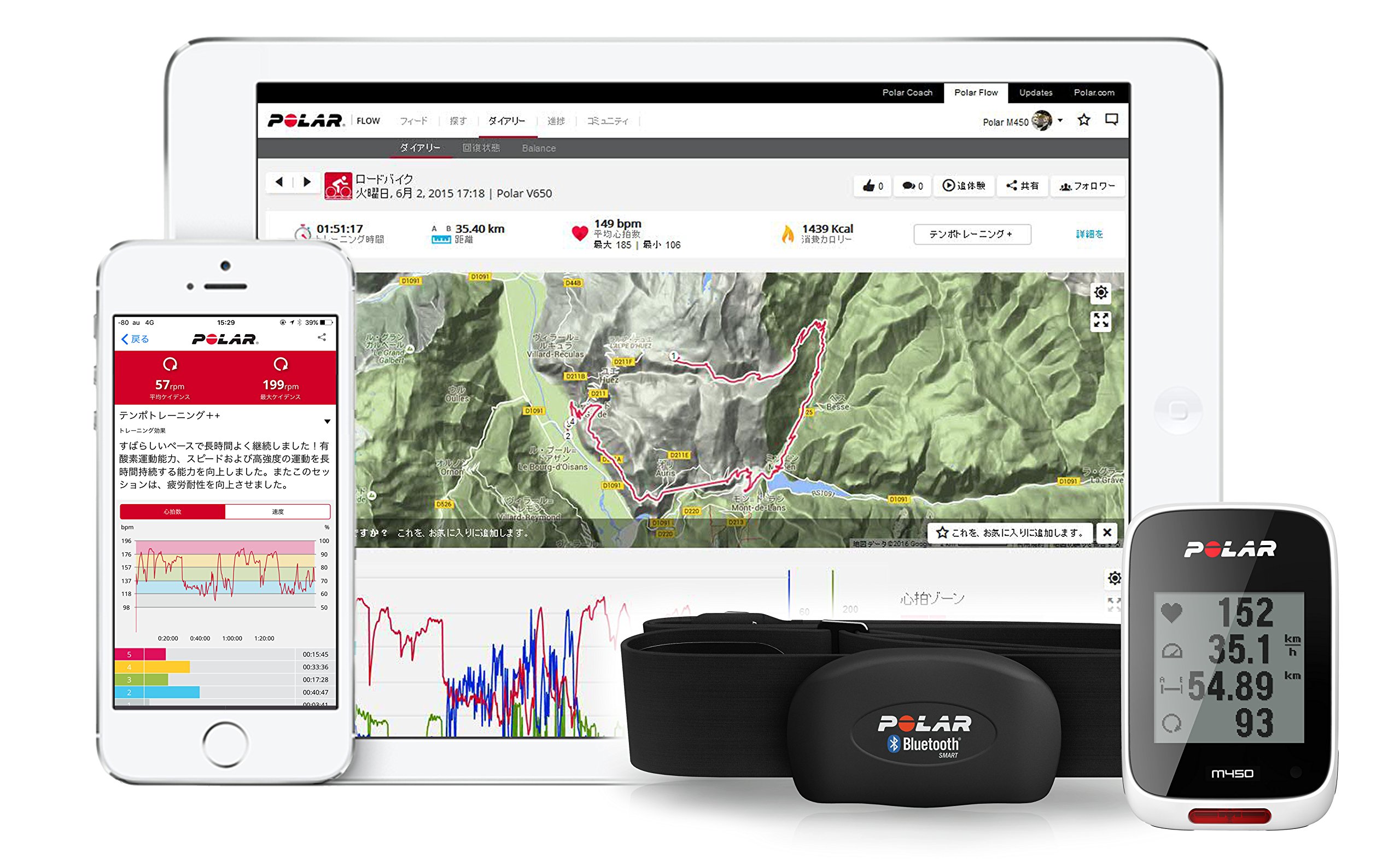Polar H 7 Corresponds to heart rate sensor, speed and cadence sensor, records and analyzes cycling performance from various angles.