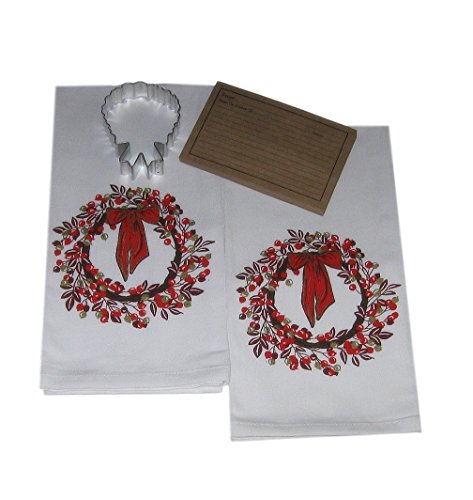 - Red and Gold Sparkle Pip Berry Wreath Flour Sack Towels with Cookie Cutter and Recipe Cards Bundle Set (4 Items) Includes: