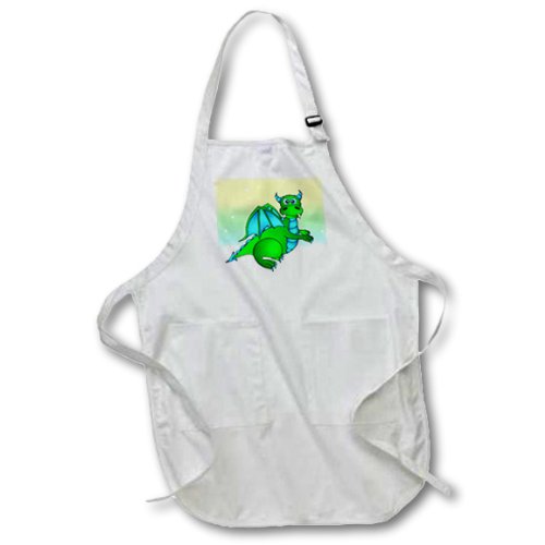 3dRose Green Dragon Twilight Flight - Medium Length Apron, 22 by 24-Inch, with Pouch Pockets (apr_6090_2)
