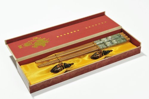 Chopsticks "Qing Ming Paradise": Fine set of asian chopsticks made of bamboo in gift box (2 pairs of chopsticks and chopstick rests with duck design) - CS-B-S2-01 (US)