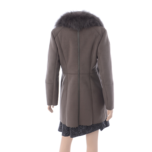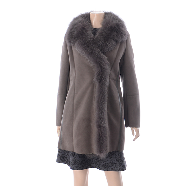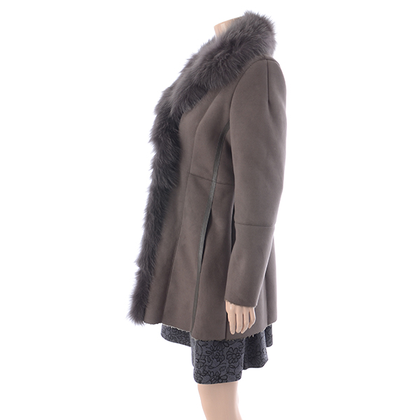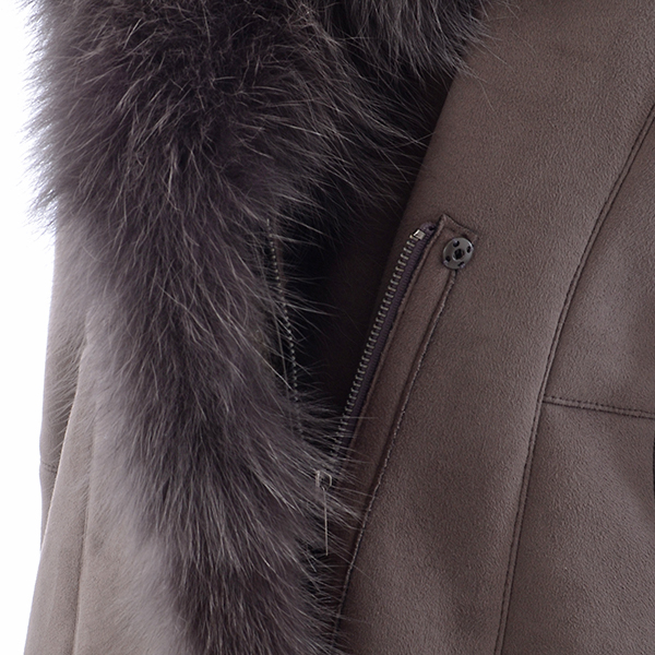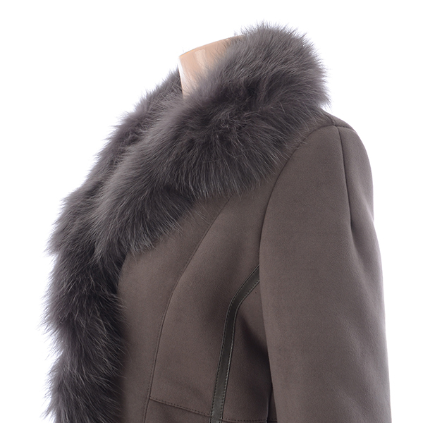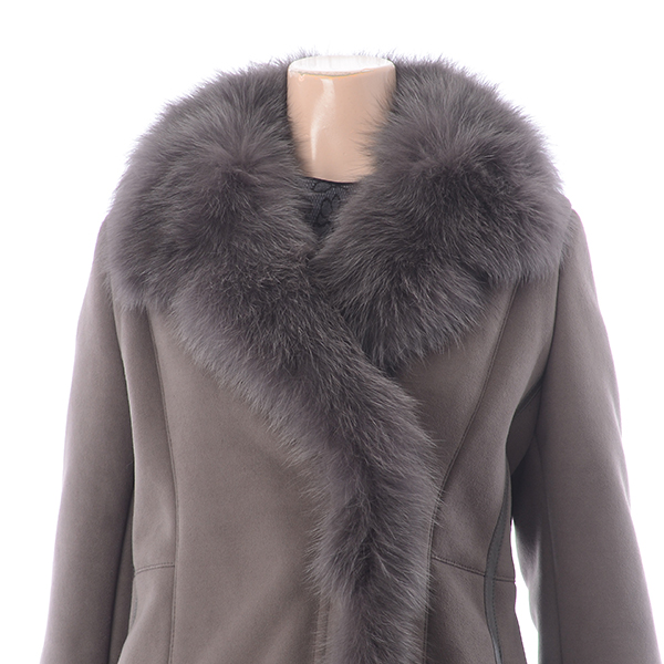 여성스러운 슬림 A라인 실루엣의 인조 스웨이드 코트로 여우털 카라로 고급스러움을 더해준 스타일