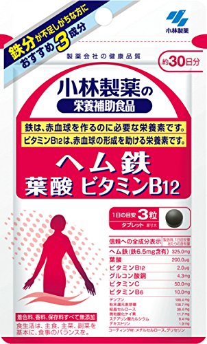 -. Title : 小林製薬の栄養補助食品 ヘム鉄 葉酸 ビタミンB12 約30日分 90粒