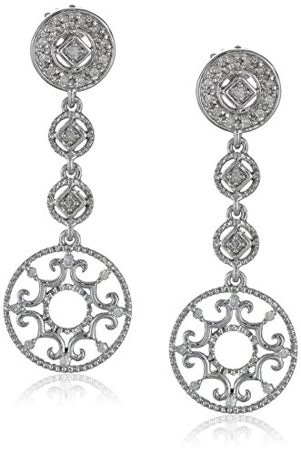 10k White Gold 1/5cttw, H-I Color, I3 Clarity, Hanging Diamond Earrings