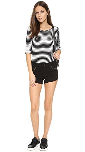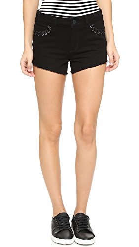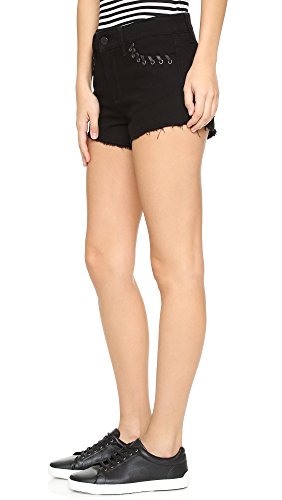 Waxed laces trace the grommet-trimmed pockets of these high-waisted Paige Denim shorts. Frayed edges. Button closure and zip fly.