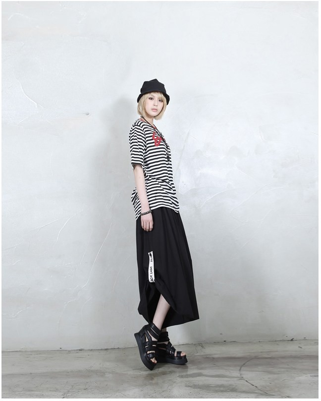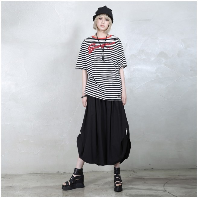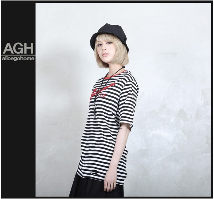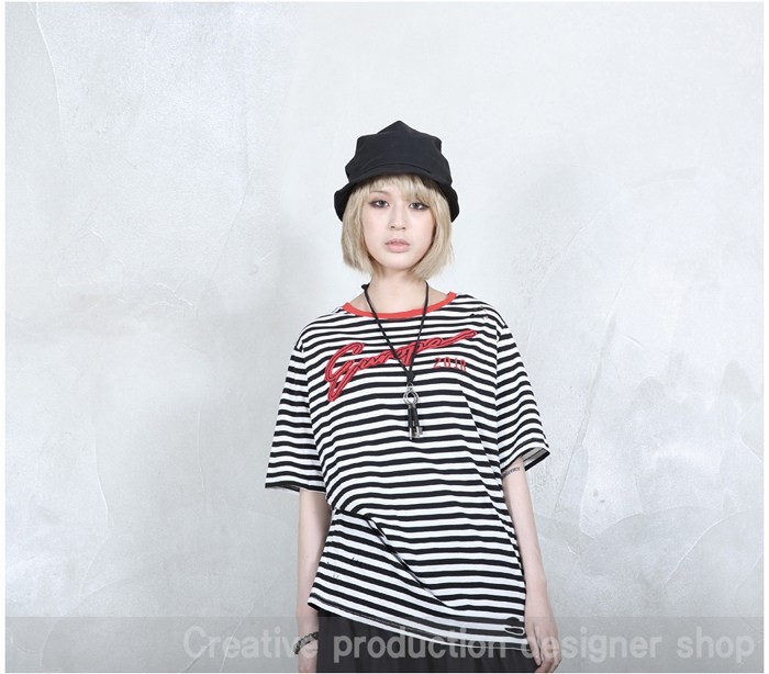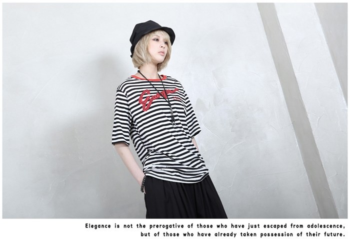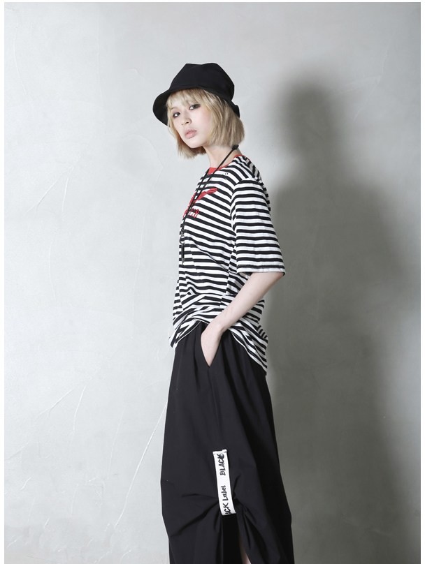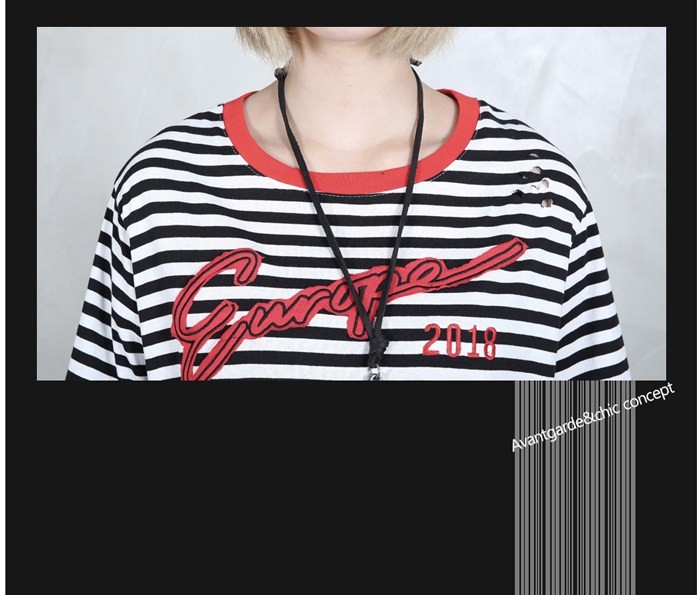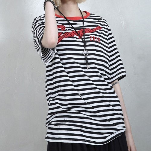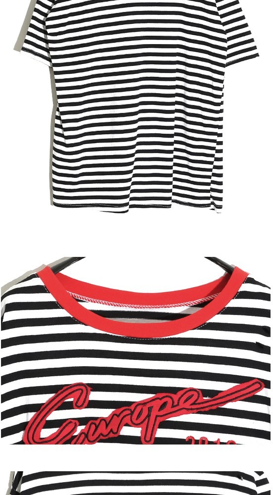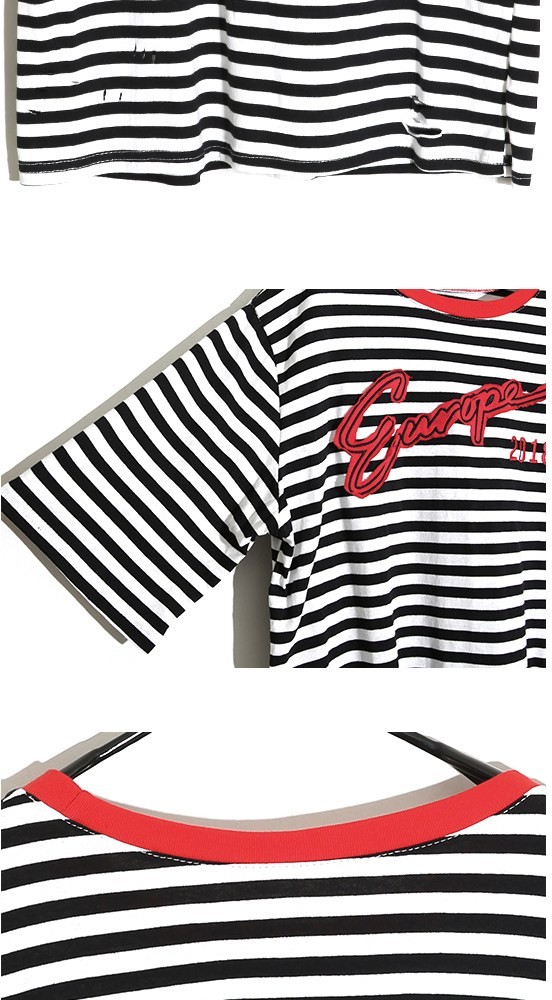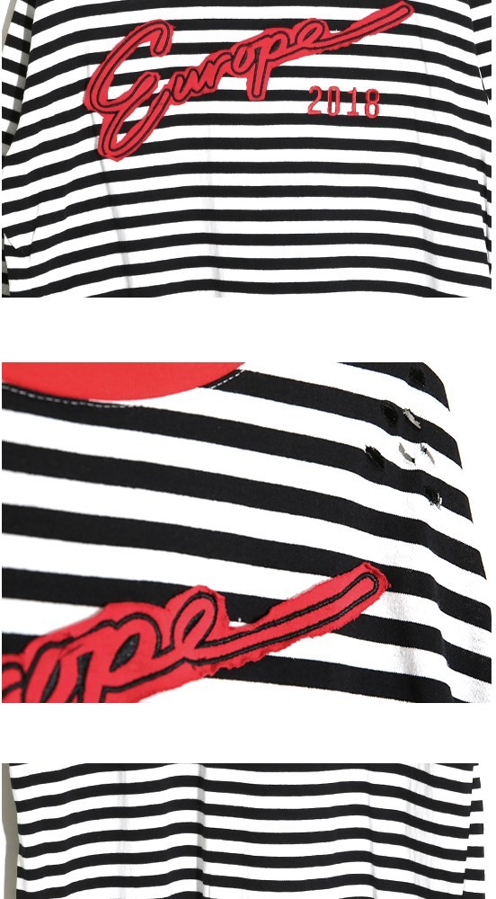 商品名:Tシャツ レディース ボーダー 半袖 刺繍 トップス 春 2018 モード系 個性的 40代 ファッション
