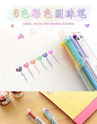 -. Feature : Creative and fashion design, writes smooth, fine point / Six color (black, red, orange, green, blue, pink) convenience in one pen / The ballpoint pen is perfect for recording data in different colors / The ballpoint pen is perfect for school, office, family use or as a gift for your kids / 0.5 mm point gives you a nice, solid, smooth line for general writing
