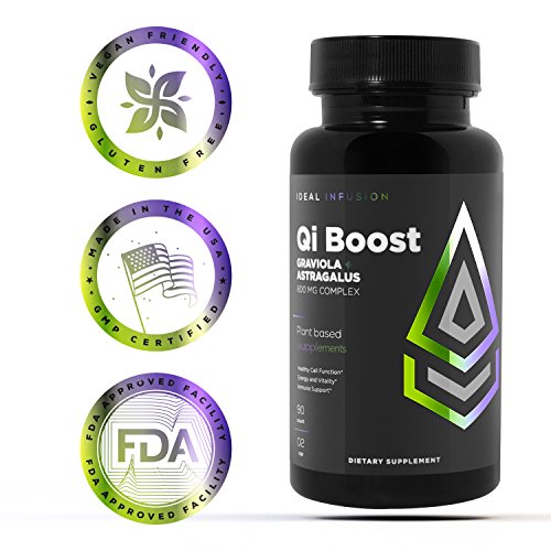 -. Feature : 🌿 DO YOU EVER FIND YOURSELF FEELING DRAINED DURING A STRESSFUL CHANGE IN YOUR LIFE? :: Qi Boost (pronounced: key) supports healthy cell function by nourishing and protecting your body from the damaging effects of oxidative stress (cortisol). Stress hormones are the #1 reason for premature aging and a lowered immune system.* Our Graviola capsules also contain Astragalus root powder, which makes this a potent immune system boosting blend! * / 🌿 YEAR ROUND VITAL ENERGY :: Whether it is winter or summer, Qi Boost contains a potent herbal adaptogenic blend that improves blood flow and heart function.* This helps improve mood and well being, since most individuals may become more stressed or irritable if their blood circulation is not at it's peak function.* These plants have been used for thousands of years to fight general weakness and to boost clarity and focus, which may lead to more productive days.* / 🌿 THE YOUTH EFFECT :: The immune boosting properties of Qi Boost are so potent that it has a strong anti-aging effect both at the molecular and cellular level. Astragalus and Soursop (aka Graviola ) may inhibit free radical damage, support healthy telomeres , and boost the immune system. The popularity of Graviola has grown, because of encouraging research highlighting its chemo-protective properties (Acetogenin).* / 🌿 UNMATCHED POTENCY :: Graviola, also known as Soursop and Guanabana, contains a natural source of trace minerals, Vitamins B1, B2, and Vitamin C. Astragalus, also known as Huang Qi, is rich in flavonoids, antioxidants, and polysaccharides. This nutrient dense combination helps support the elimination of free radicals, which are destructive to all tissues in the body. * . / 🌿 PEACE OF MIND QUALITY INGREDIENTS :: Unlike other graviola and astragalus products, our product is manufactured here in the USA at an FDA approved and GMP certified facility that is also NSF certified. This means our facility is 3rd party audited ensuring that you are receiving the highest quality product available. Vegan Friendly, Soy Free, Gluten Free, and Non-GMO.*