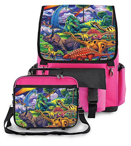 -. Brand : Kidaroo -. Department : boys -. Feature : Decorative Flaps On The Backpack & Lunch Box Are Interchangeable! (PATENT PENDING) / Backpack Has A Spacious Main Storage Compartment With A Large Padded Interior Pocket For A Small Laptop Or Large Tablet. Lots Of Pockets. / Thick Padded Back For Comfort With Adjustable Shoulder Straps. / Lunch Box Attaches To The Outside Of The Backpack With Durable Metal Clips And Comes With An Adjustable Tote Strap. / Backpack: 17" x 12" x 7" / Lunch Box 8.5" x 10" x 3.5" -. ProductGroup : Apparel -. ProductTypeName : LUGGAGE -. Title : Kidaroo Dinosaur Jungle School Backpack & Lunchbox for Boys, Girls, Kids