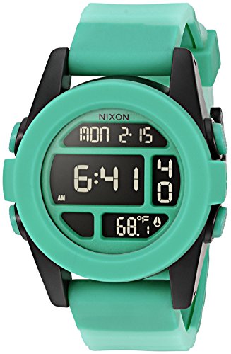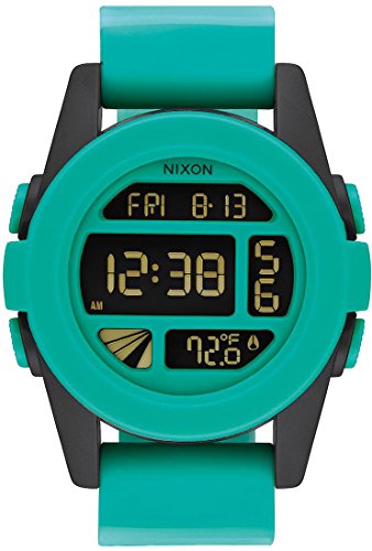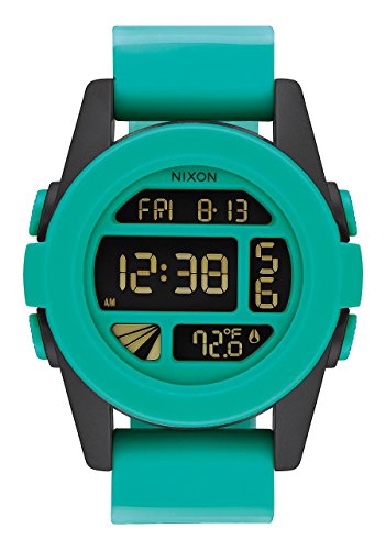 Studio : Nixon Inc. Publisher : Nixon Inc. Binding : Watch Product Description Jamming a lot into a little, the Nixon Rockin' a Fade Collection Unit Watch proves that good things come in small packages. Bridging the gap between sporty and casual streetwear, the Unit delivers all of the essentials time, date, day, alarm, chronograph, countdown timer, and a thermometer in a sleek LCD display that's protected by a hardened mineral crystal face. The durable fiber-reinforced polycarbonate case and co-molded silicone bezel deliver shock-resistance and make the watch water-submersible up to 100 meters, while the free-swing, custom-molded silicone band has locking loops and a polycarbonate buckle for all-day comfort. 0