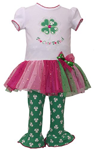 -. Binding : Apparel -. Brand : Bonnie Jean -. Department : baby-girls -. Feature : Adorable Girl St. Patricks Outfit! Too Cute to Pinch appliqued legging set with multi colored tutu skirt and matching legging -. Label : Bonnie Jean -. Manufacturer : Bonnie Jean -. MPN : R09205 -. PartNumber : R09205 -. ProductGroup : Apparel -. ProductTypeName : PANTS -. Publisher : Bonnie Jean -. Studio : Bonnie Jean -. Title : Bonnie Jean Girls St Patrick's Day Outfit Too Cute Legging Set