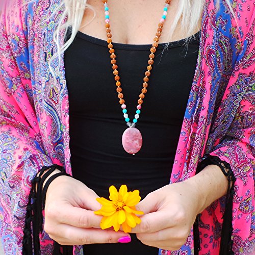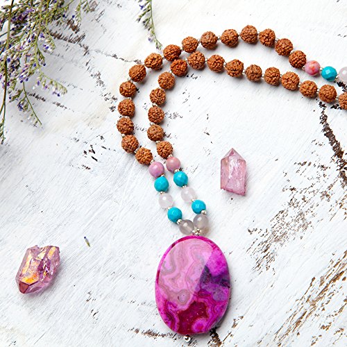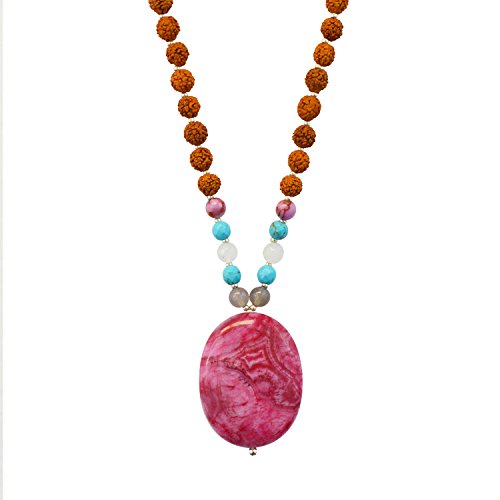 108 Bead Rudraksha ; Pink Crazy Lace; Turquoise Howlite ; Grey Agate; Pink Jade Mala Bead Necklace for use in Japa Meditation