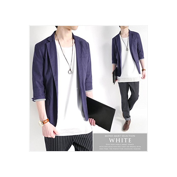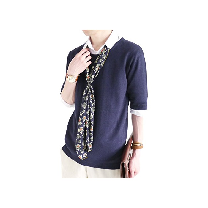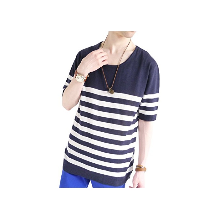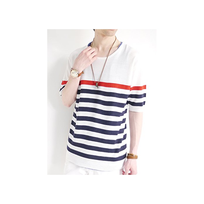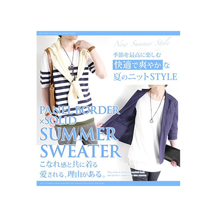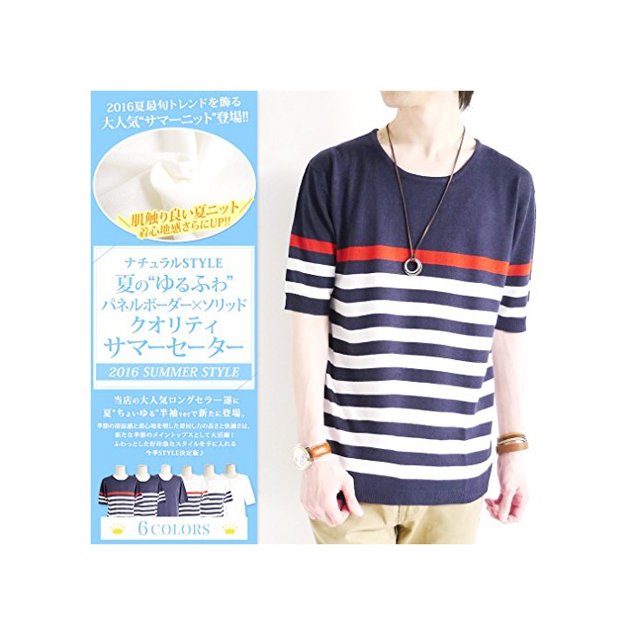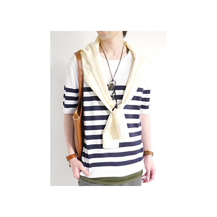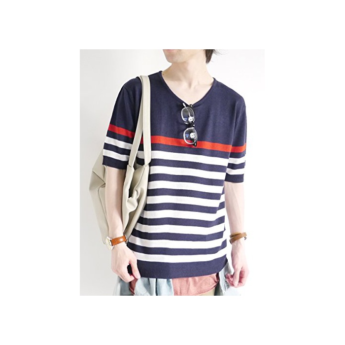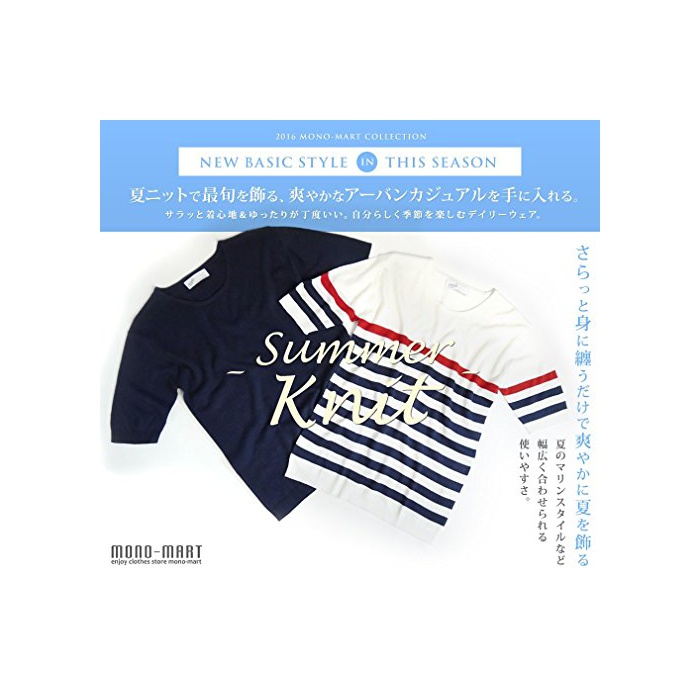 (모노마트) MONO-MART 패널 보더 썸머 니트 반소매 《사라》후와(불화) 썸머 가볍 ## 실루엣 톱스 모드 맨즈 네이비 M사이즈