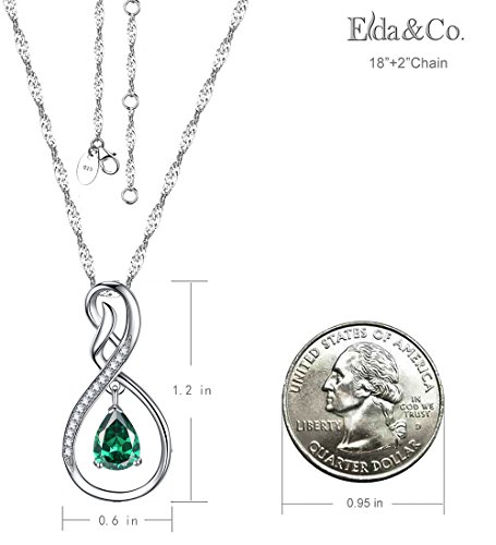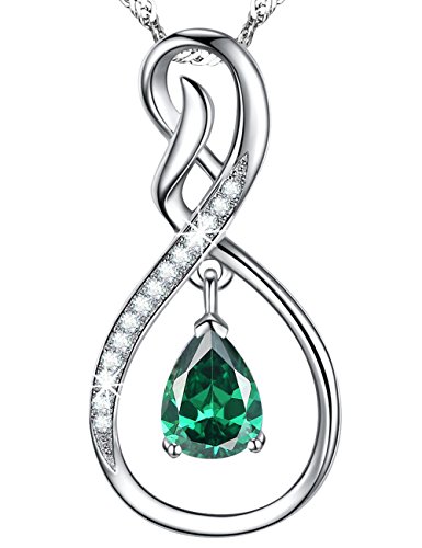 superior quality, 18K white gold plated over sterling silver, this delicate Infinity and dangle Emerald Swarovski Element 20" Singpore chain will never let you down.