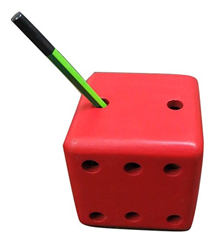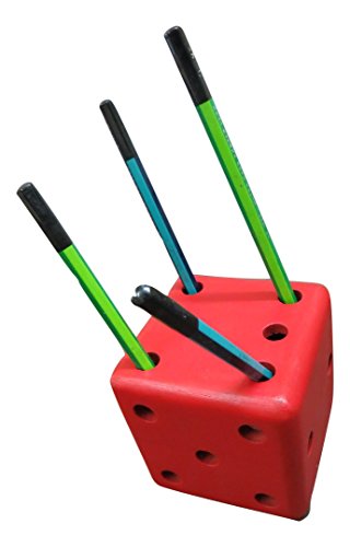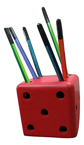 Valentine Day Special Present , Affaires Wooden Dice Shape Pen Pencil Stand Holder (3.5 Inches) , Office Desk Organizer Gift (Red) W-40211