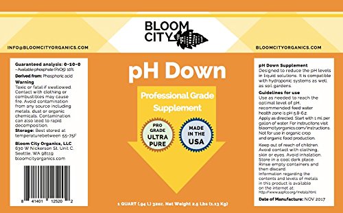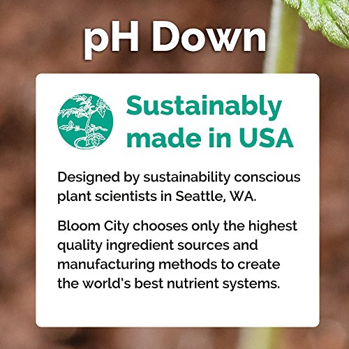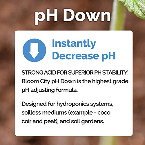 - STRONG ACID FOR SUPERIOR PH STABILITY: Bloom City pH Down is a strong pH adjusting acid that helps the home grower maintain optimal pH levels. Formulated with the highest grade pH adjusting formula