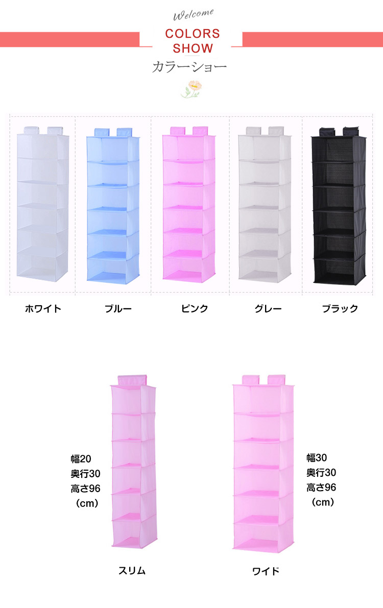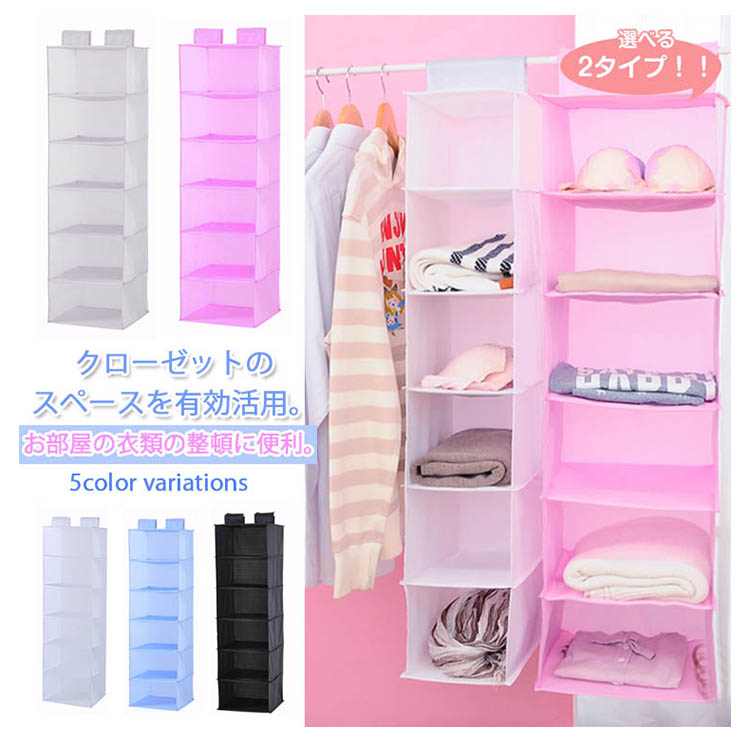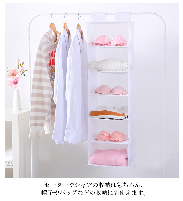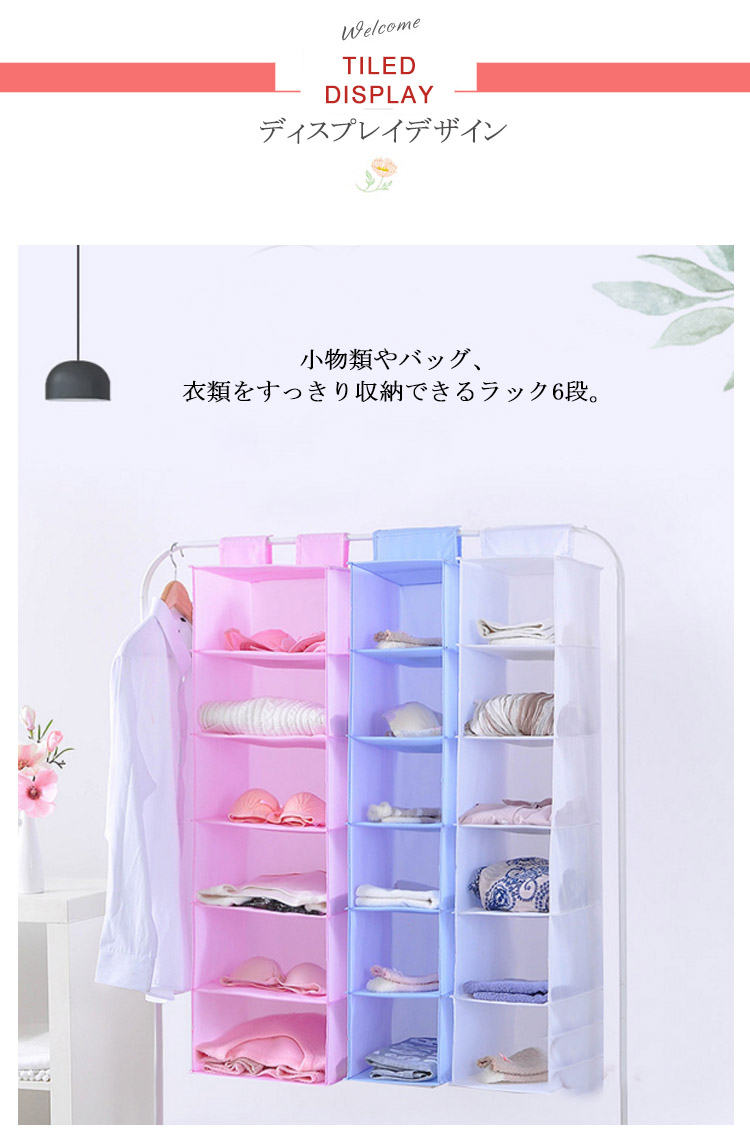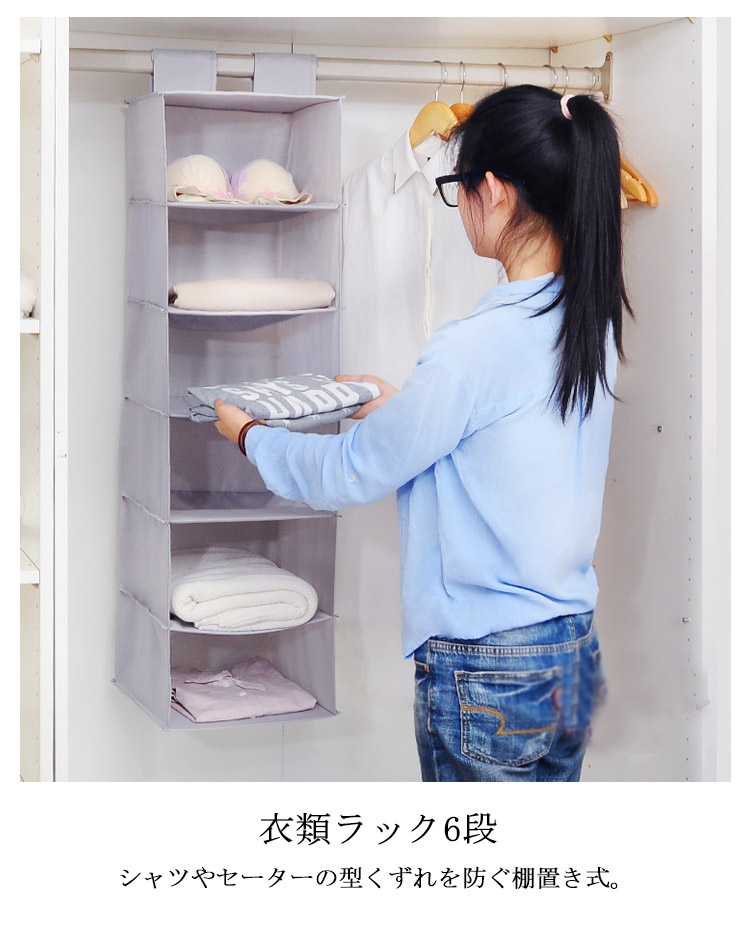 | クローゼットのスペースを有効活用。お部屋の衣類の整頓に便利。小物類やバッグ、衣類をすっきり収納できるラック6段。使わない時は小さく収納できます。 | |