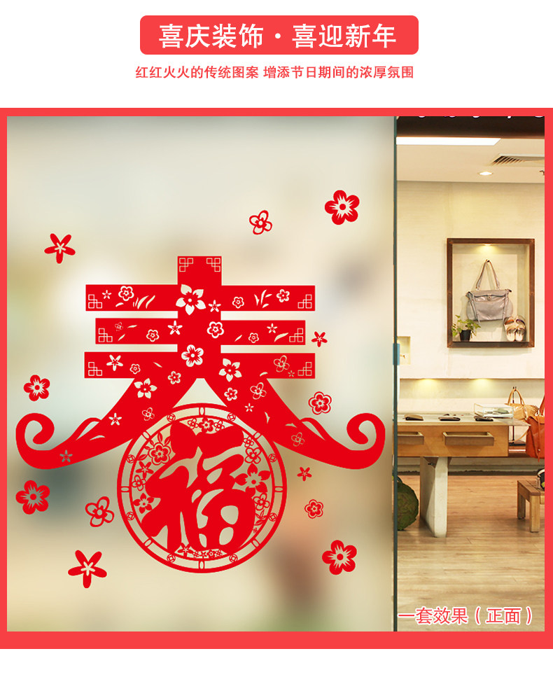 新年狗年装饰品玻璃橱窗贴纸墙贴画春节过年春字福字窗户窗花