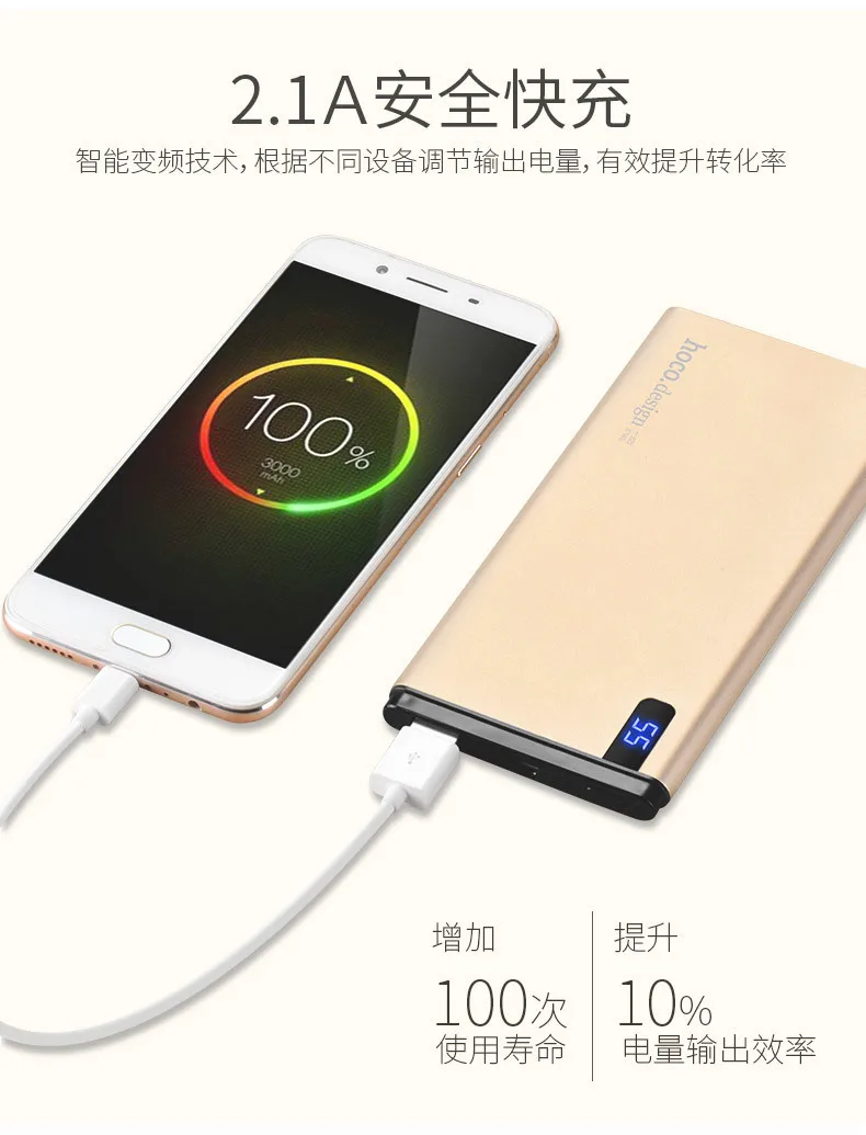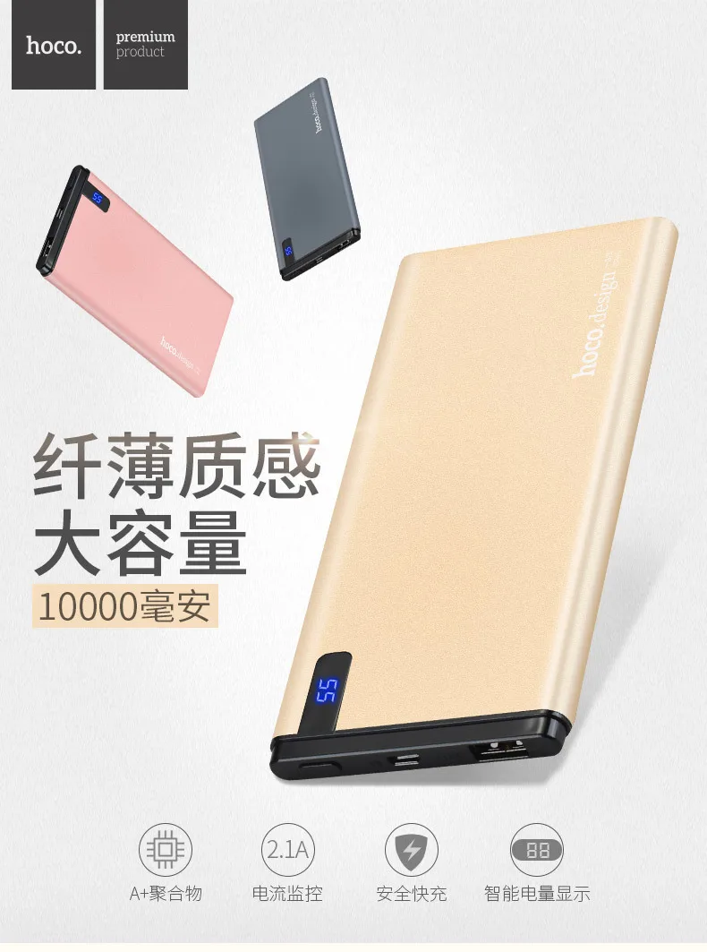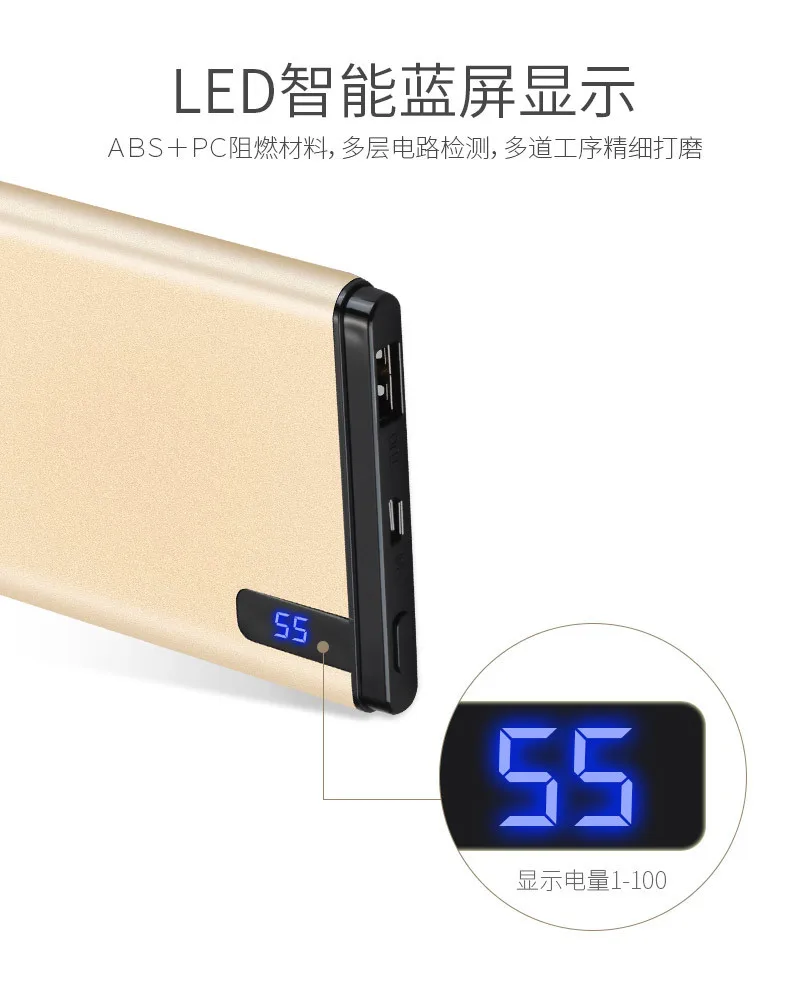 10000mAh Power Bank LED display External charger back up battery for iPhones, Samsung, Xiaomi, tablet PC 2.1A fast charge